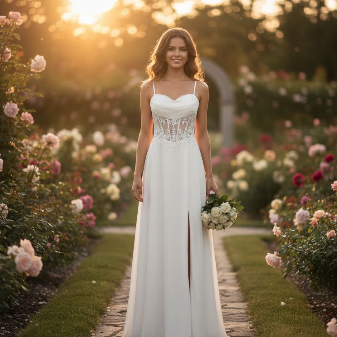 Celebrate your special day in effortless elegance with this Chiffon A-Line Wedding Dress with Illusion Lace Bodice. Designed for modern romance, this gown features a delicate illusion lace bodice that adds soft detail and graceful coverage. The flowing chiffon skirt creates beautiful movement, while the A-line silhouette flatters every figure. Perfect for classic, beach, or garden weddings, this dress offers timeless beauty with lightweight comfort.